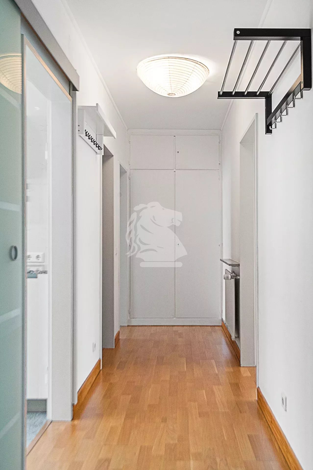 The apartment benefits from a rational layout, built-in storage in the hallway, and large windows throughout, ensuring a bright and welcoming ambiance.