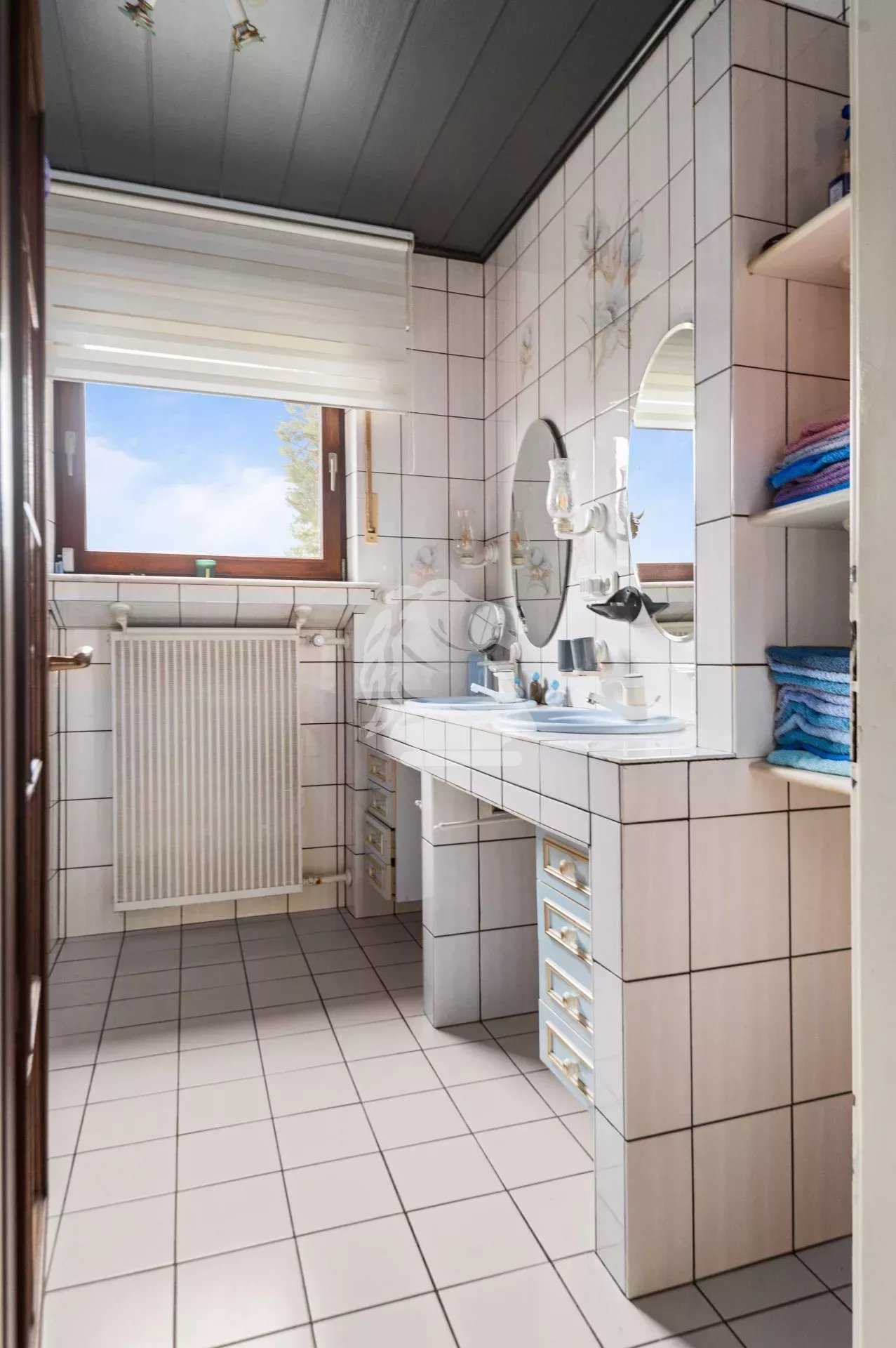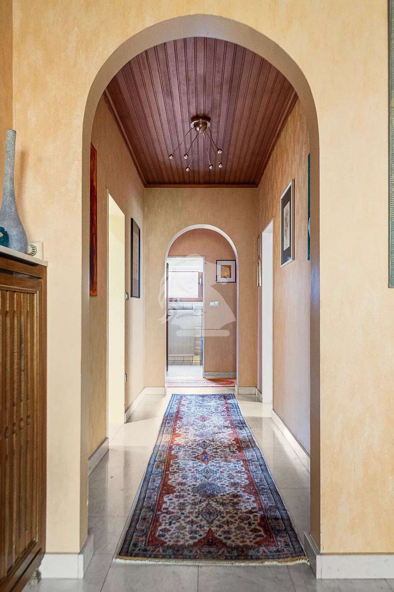 À ce niveau, vous trouverez également une chambre avec accès jardin, une salle de douche avec WC et double vasque, un WC séparé, ainsi que deux autres chambres, dont l’une équipée d’un point d’eau. Un espace voûté ouvert, actuellement utilisé comme penderie, apporte un charme supplémentaire au hall d’entrée.