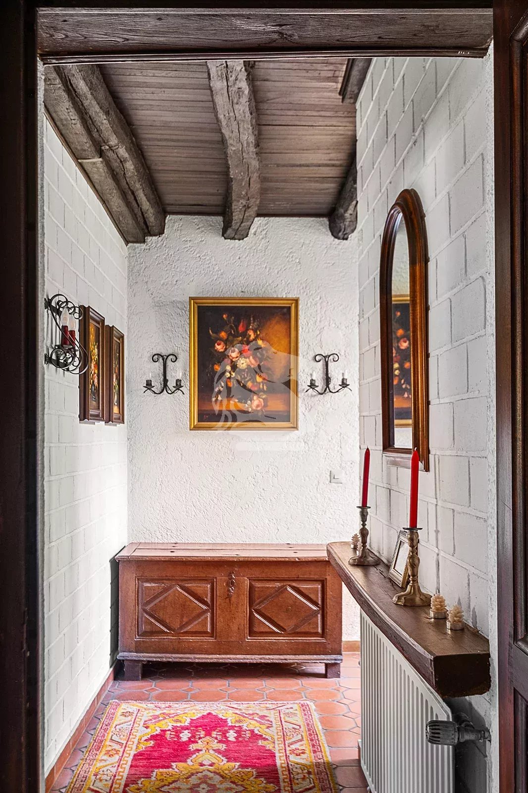As you enter, you are greeted by a beautiful paved courtyard leading to the main house, where each room reveals timeless architectural elements and abundant natural light.